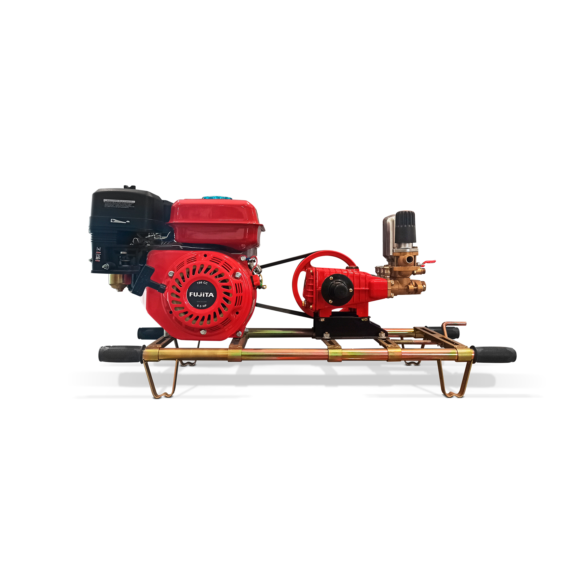 Está equipada con un motor Fujita a gasolina de 4 tiempos y 6.5 caballos de fuerza y una bomba con tres pistones de acero inoxidable.